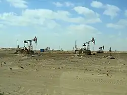 Major onshore oil fields include Çeleken, Goñurdepe, Nebitdag, Gumdag, Barsagelmez, Guýujyk. Gyzylgum, Ördekli, Gögerendag, Gamyşlyja, Ekerem, Çekişler, Keýmir, Ekizek, and Bugdaýly.[59] In 2019, capital investment in the oil industry totalled 3.29 billion manats.[60] In January–November 2020, Turkmenistan extracted 8.7 million tonnes of oil and condensate. Production of liquid petroleum gas totalled 231,000 tonnes.[43] Oil production in calendar year 2023 was reported in official state media as 8.3167 million tonnes.[44]