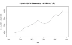 GDP per head in Wales at current market prices has increased from £12,810 in 1998 to a peak of £27,274 in 2022. This compares to the UK averages of £17,073 in 1998, £34,424 in 2019 and £32,141 in 2020.[8]