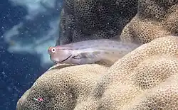 Ecsenius stictus, known commonly as the Great Barrier Reef blenny, is a species of combtooth blenny in the genus Ecsenius. It is found in the Great Barrier Reef, and around the Chesterfield Islands. It can reach a maximum length of 5.8 centimetres. Blennies in this species feed primarily off of plants, including benthic algae and weeds.[2]