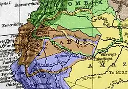 The lack of resolution of the dispute, despite several attempts by both parties, led to several conflicting treaties being signed between different parties to the conflict, including Colombia and Brazil, and led to war on several occasions. The first of these armed conflicts took place in 1828, when Peru fought against Gran Colombia in the Gran Colombia–Peru War.[5] After the dissolution of Gran Colombia, the conflict resumed with Ecuador, with skirmishes taking place often and the first Ecuadorian–Peruvian War taking place between Ecuador and Peru from 1857 to 1860.[6]