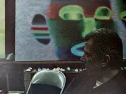 In the decades separating Pink Lady and Matinee (1987), Paschke shifted his interest from print to electronic media and a dazzling spectrum of televisual waves and flashes began to fill the paintings. Forms and images disintegrated, broken apart in the fabric of electronic disturbance and its surface. In Matinee, the face of Elvis Presley is fragmented into a field of glowing swathes of color with lips and eyes alone suggesting the human presence beneath the electronic overlay.[4]