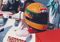 Irvine began to compete with racing cars in 1983.[4] He was initially interested in motorcycle racing, but his parents thought the sport too dangerous and was encouraged by his father to race in Formula Ford.[4] Irvine worked unpaid in his father's scrapyard, in return for which, his father funded his racing hobby.[5] He won his first race at Brands Hatch in 1984, and an award for best driver.[4] In 1987 he joined the Van Diemen team and won the Esso Formula Ford series, the RAC Formula Ford series, and the Formula Ford Festival.[6]