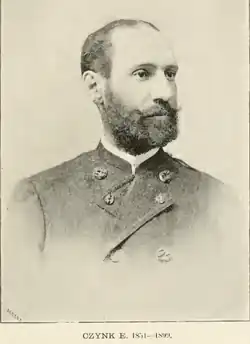 Czynk was born in Kronstadt, Transylvania, where his father was a customs officer who was also famous as a hunter of bear and chamois in the Southern Carpathians. Travel with his father made him interested in nature from a young age. He went to Saxon Evangelical and Roman Catholic secondary schools and one of his teachers was Wilhelm Hausmann (1822–1900), who was also a noted ornithologist. After high school at Kronstadt, Czynk joined the civil service and worked as a postal clerk, first at Brașov. In 1879 he was posted to Budapest and in 1883 to Fogarasch where he was head of the post and telegraph office. Here he collaborated with Alexander Florstedt and became involved in chamois conservation. He also began to study bird migration and collected from the region. In 1890, as part of preparations for the 2nd International Ornithological Congress in Budapest the next year, he began to work with Otto Herman to publish a book on bird migration in Hungary. After the creation of the Hungarian Ornithological Centre he became an observer there and was involved in studies on the lammergeier, the black grouse and other birds. His work went into the annual reports published by Viktor Ritter von Tschusi zu Schmidhoffen. He also wrote book on hunting, the first of which was on bears, but the most famous being in German Die Hohe Jagd (1898). He wrote to hunting periodicals as well. He also published monographs on woodcock (1896), capercaillie (1897) and waterfowl (1898). Czynk's bird collections included well-prepared skins that Stefan von Chernel wrote admiringly on. He married Elisabeth Meld in 1878 and they had three children. Towards the end of his career he was posted back into his home town of Kronstadt but he did not live long after that and died from a kidney ailment.[1][2][3][4][5][6]