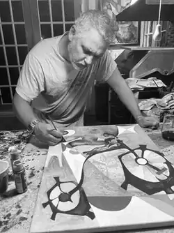 ![]() AGalban painting Verano from his 4 Estaciones en Bicicleta series in his studio, 2020. | |