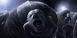 The jeep team eventually discovers structures resembling graves and hundreds of preserved skeletons, and adjacent to it, a settlement. Two expedition members exploring the settlement become caught in a stampede of doublers, who seem totally indifferent to the presence of the alien expedition. One doubler however, comes to the jeep and refuses to return to the settlement, and is brought back to the ship. While the expedition explored the settlement, a large group of doubler vehicles had reconnoitered the crash site and then fled.