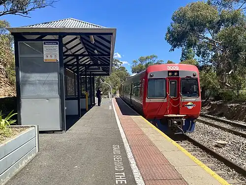 Eden Hills railway station is located on the Belair line. Situated in the Adelaide southern foothills suburb of Eden Hills, it is 14.2 kilometres from Adelaide station.[2]