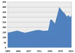 Edenbergen is the smallest village of the municipality of Gersthofen and amounts only to about 1.5 percent of the town's total population. On 1 July 2009, 304 people lived in Edenbergen, 148 females and 156 males. This corresponds to a proportion of women of 48.7 percent.[3] At that time, the population density of Edenbergen was 69 inhabitants per square kilometer (180 inhabitants per square mile).