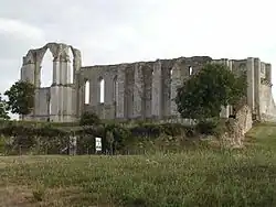 On returning to France in 1872 he decided to buy the abbaye de Maillezais, site (among others) of the cathédrale Saint-Pierre de Maillezais.[2] This was sold four years earlier on the death of Madame Pouey d'Avant and had fallen slowly into ruin — since the French Revolution its materials had been sold off little by little. With the inheritance from their mother, Edgar and Camille Bourloton (1848–1884), himself a member of the Papal Zouaves, decided to save any buildings on the site which they deemed to be of historical importance. After their death, the abbey was made a monument historique on 30 January 1924.
