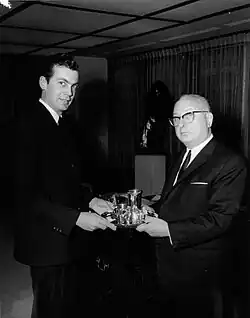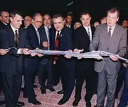 When former World Jewish Congress president Philip Klutznick stepped down in 1979, Bronfman was asked to take over as acting head of the organization, then was formally elected president by the Seventh Plenary Assembly, in January 1981.[9] Together with his deputy, Israel Singer, Bronfman led the World Jewish Congress. Initiatives such as those seeking to help free Soviet Jewry; to expose Austrian president Kurt Waldheim's Nazi past; and to help victims of the Holocaust and their heirs to acquire compensation (including by Swiss banks) raised Bronfman's international profile during the 1980s and 1990s.[10][11][12][13]