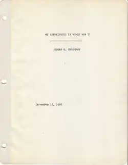 - ^ Edgar Gibson Crossman, U.S. Army Personnel Record, Military Personnel Records Center, St. Louis, Missouri. Hereafter cited as "Edgar Crossman, U.S. Army Personnel Record."
