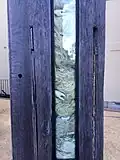 Organic materials such as human hair, shell, bone, feathers, ash and honey, are embedded in windows within the wood pillars, symbolising and memorialising the lives that lived around the site. Natural and cultural histories are evoked by the names of botanical species carved or burnt into wooden columns in both Latin and Aboriginal languages, along with the signatures of First Fleeters.[3]