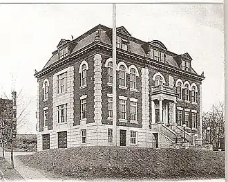 Borough Hall, the Binghamton Ferry and the Edgewater Public Library are listed on both the National Register of Historic Places and the New Jersey Register of Historic Places.[77] Constructed in 1904, Borough Hall was granted $406,000 by Senate and General Assembly of New Jersey in August 2009 for restoration of the building.[78] Among other renovations, the missing gargoyles were returned to the 1902 edifice.[79][80]