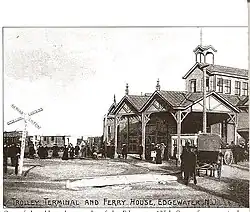Edgewater was incorporated as a municipality on December 7, 1894, from portions of Ridgefield Township as the Borough of Undercliff, based on the results of a referendum that passed two days earlier.[27] The borough was formed during the "Boroughitis" phenomenon then sweeping through Bergen County, in which 26 boroughs were formed in the county in 1894 alone.[28] The borough's name was changed to Edgewater on November 8, 1899.[27][29] The borough was named for its location on the Hudson River.[30]