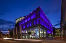 The centre is part of the masterplanned Exchange District in the west end of the city, and was designed by the architect Sir Terry Farrell who ran the project from his Edinburgh office with his team, opened to manage this project and other work in the Exchange.