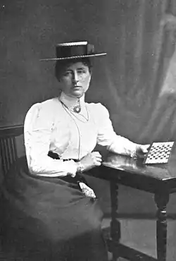 In the mid 1880s, Baird started composing chess problems and within a few years had gained a reputation in the field.[3] In 1888, she took third prize in a Sheffield chess-composition tournament, the first of over two dozen subsequent prizes.[2] Her most celebrated success came in 1893 when she won an international chess-composition tournament against a number of the most notable chess composers of the day.[3] She became the most prolific composer of chess problems in the world, with over 2000 problems to her credit.[1] These were published in newspapers such as the Times of London.[2] Some of these are still considered sound, many are considered elegant, and some are novelties such as letter problems, in which chess pieces have to form the shapes of letters.[2][3]