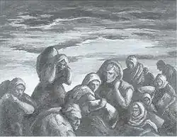 The following year she was given a solo exhibition at the Grant Gallery in which she showed still lifes, landscapes, and scenes showing indigenous Mexicans.[19][note 3] In 1937 she showed a lithograph called "Exiled" in the International Print Makers Exhibition at the Los Angeles Museum.[7] The Los Angeles Times headed its article on the show with a reproduction of the print and its critic said it was "grim."[21] This 1936 lithograph and a 1937 painting she made of the same scene were later purchased by the Metropolitan Museum of Art.[22] The lithograph can be seen at right.