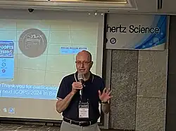 ![]() Schamiloglu presenting a plenary talk at the 2023 Asia Pacific Conference on Plasma and THz Science, Busan, Korea | |