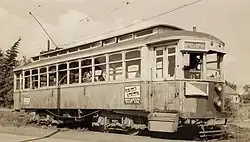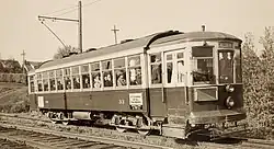 A baby named Peter Budnyk, was born on Streetcar No. 42 on June 19, 1914.[6] His mother was on her way home from work, and went into labour during the commute.[6] She whispered something into the ear of the Conductor, and, blushing, he promised to try and hurry the streetcar to the doctor as quickly as he could. Despite the crew's best efforts, the woman gave birth while she was still on the streetcar.[6] At Kirkness and Alberta Avenue, two women carried the mother and her baby into the nearby ERR waiting room, and an ambulance later took them to a hospital.[6] Peter was healthy, and remained in the Edmonton area; he later rode Streetcar No. 1 during its ceremonial last run on September 1, 1951.[6]
