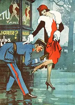 Besides his work in the visual arts, he also amused himself and his friends by writing poetry in Jèrriais,[8] signing himself as Un Tout-à-travèrs. In 1933, La Chronique de Jersey, a French language newspaper, considered publishing a booklet of Blampied poems illustrated by the artist himself, but the plans came to nothing. In 1938 two of his poems were set pieces at the Jersey Eisteddfod. In 1944 he wrote words for an insulting anti-Hitler song entitled La chanson Hitleur and provided illustrations for two poems written by Winter Le Brocq.