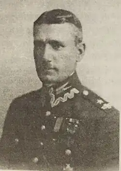 From 8 July 1920, he served in the 16th Greater Poland Uhlan Regiment as a podporuchik of cavalry, and commanded by Major Ludwik Kmicic-Skrzyńskii whom appointed him commander of the 3rd Squadron.[5] In this function he participated in battles against the Soviets[6] (for service in the 15 ACS received the Cross of Valour[7]).