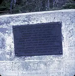 The Kennedy Memorial Monument was unveiled on 13 December 1948 in Somerset, Queensland in commemoration of the 100th anniversary of Kennedy's unsuccessful exploration of Cape York Peninsula.[14] The monument comprises a concrete slab on a concrete footing with a bronze commemorative plaque on its eastern face.[15][16]