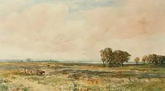 When aged about 38 he became a professional landscape watercolourist and member of the Society of British Artists. In 1874, he joined the Royal Institute of Painters in Water Colours, and went on to become one of its foremost members, being elected vice-president in 1895. In 1879–80, he accompanied his two sisters Fanny and Jenny on a visit to their sister, Susanna, married and living in Dunedin in New Zealand.[4] He stayed for some months, exhibiting at the Otago Art Society in 1880.