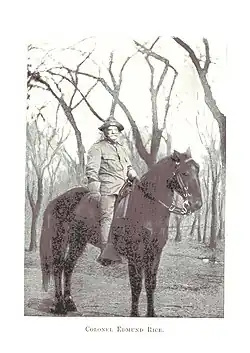 Edmund Rice served as U.S. military attaché at Tokyo, Japan from May 1897 through April 1898. At the outbreak of the Spanish–American War, he asked to be relieved from diplomatic duty and to be given active field command. In May, 1898 he was appointed inspector general with the rank of lieutenant colonel on the staff of General Nelson A. Miles. Later upon the recommendation of Miles, Rice was promoted to colonel and placed in command of the 6th Massachusetts Volunteer Regiment that saw active service in both Puerto Rico and Cuba.