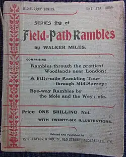 Walker wrote 37 pocket-sized books of 'field-path rambles' and published them via his own printing company which he inherited from his father. The pocket-sized guides covered walks in the Surrey and Kent area and were known for their meticulous attention to detail, with each new guide containing several pages of updates and corrections to previous books. They are credited with saving many little-known footpaths and rights of way from falling into disuse and being lost forever.[2]