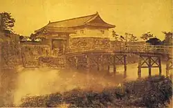 The Edo Castle gates (江戸城三十六見附) are the gates of Edo Castle in Tokyo, Japan. They were placed at crossing points (bridges) of the castle moats. Originally, there were 36 gates. Of these 36, 11 remain intact, including Sakurada Gate, while the rest have been demolished. Today, the central quarter of the castle is Tokyo Imperial Palace. Most gates in the palace are still intact, with gates on the moats leading into the palace still being used as security check points. However, all gates outside of the palace no longer exist. Some districts in Tokyo have been named after the castle gates.[1]