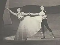 Borovansky was naturalised as a British subject[2] in 1944, becoming a well-known figure in Melbourne and "notorious for his despotic treatment of his dancers".[1] In 1944, the 40-strong company had toured the mainland capitals, Tasmania and New Zealand with a repertoire that included Giselle, Swan Lake (Act II), Les Sylphides, En Saga, Capriccio Italien, Frederick Ashton's Façade, and Borovansky's symphonic fantasy, Vltava. In 1945, the company toured mainland Australia again. Borovansky's operation was assisted artistically in no small measure by the presence of his pre-war colleague, the principal dancer, Tamara Tchinarova, whose memory of the choreography surpassed his.[3] This tour included an 8-month season in Melbourne featuring the "tried favourites of pre-war 'Russian ballet'" – Le Carnaval, Schéhérazade and Le Beau Danube – as well as a new work by Borovansky, Terra Australis.[1]