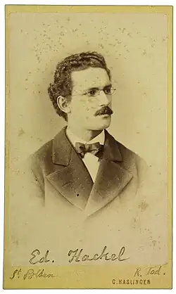 Eduard Hackel (17 March 1850 in Haida, Bohemia – 2 February 1926 in Attersee, Upper Austria) was an Austrian botanist. His father was a veterinarian in Haida (now Nový Bor) in Bohemia. He was married and had one son.