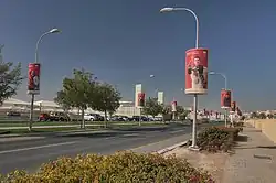 ![]() ![]() ![]() ![]() ![]() ![]() Top to bottom and left to right: Qatar Foundation Headquarters under construction, the backyard of Carnegie Mellon University in Qatar, the bicycle path at Carnegie Mellon University in Qatar, Road in Education City, Discover art installation, Latticework at Ceremonial Court | |