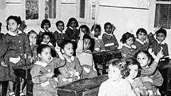 In 1926 the Department of Education was established and in 1957 the first university. Before the King Saud University was founded, many Saudi Arabians went abroad to attend university.[12] In 1955 the first school for girls was established.[13]