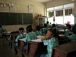 The Human Rights Measurement Initiative (HRMI)[2] finds that Suriname is fulfilling only 61.6% of what it should be fulfilling for the right to education based on the country's level of income.[3] HRMI breaks down the right to education by looking at the rights to both primary education and secondary education. While taking into consideration Suriname's income level, the nation is achieving 64.7% of what should be possible based on its resources (income) for primary education but only 58.4% for secondary education.[4]