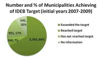 In the initial years of IDEB's implementation, 2007–2009, it was found that over 70% of municipalities either reached or exceeded targets set by the Ministry of Education and INEP for early primary education.[23]