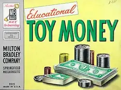 Educational Toy Money (also titled Bradley's Toy Money, Toy Money, and Bradley's Toy Money Complete with Game of Banking), is a set of play money that was first produced by the Milton Bradley Company in 1877. It was valued as an educational tool in the United States for several decades, and Milton Bradley continued to publish it until the middle of the twentieth century.