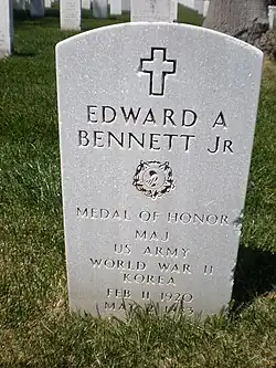 In June 1951, after the start of the Korean War, Bennett became a commissioned officer.[2] He served in Korea and eventually reached the rank of major before his retirement in October 1962 following a heart attack. He died at age 63 on May 2, 1983, and was buried at Golden Gate National Cemetery in San Bruno, California.[2]
