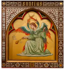 - Holy Trinity, Roehampton. opulent altar panels created by Prynne in 1898, predominantly gold and red, and depicting Seraphim and The Lamb.[67] Prynne's designs were coloured under the supervision of Messrs Fouracres of Plymouth.[68] The church is a neo-gothic building by George Fellowes Prynne.[69][70]