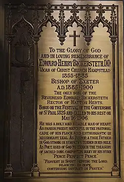 Edward Henry Bickersteth (25 January 1825 – 16 May 1906) was a bishop in the Church of England and he held the office of Bishop of Exeter between 1885 and 1900.