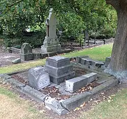 Bishop died at his home at 2 Cranmer Square, Christchurch Central City, on 25 April 1887; he had no children and had never been married.[5][67] He was buried at Barbadoes Street Cemetery.[68] Three family members are buried with him: his brother Charles Wellington Bishop (died 1884),[18] his brother's wife Ellen Elizabeth Bishop (died 1890),[69] and his sister Emma Kate Bishop (died 1898).[4][70]