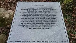 - ^ a b c d Bradley County (Plaque). Cleveland, Tennessee: City of Cleveland, Tennessee. 2016.