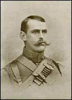 Brown had achieved the rank of major when the 14th King's Hussars were mobilised for active service on 9 October 1899 for service in the Second Boer War. They had been stationed at Newbridge in Ireland,[3] and arrived in South Africa in January 1900. As a result of his courage under fire, he was awarded the Victoria Cross. He was also mentioned twice in dispatches: on 29 November 1900 by Lord Roberts, Commander-in-Chief during the early part of the war[4] and on 8 April 1902 by Lord Kitchener C-i-C during the latter part of the war[5]
