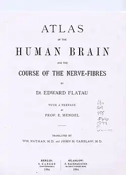 - Atlas of the human brain, and the course of the nerve-fibres, by Edward Flatau, with a preface by E. Mendel. Berlin, S. Karger, 1894. 25 pages.