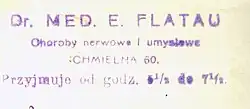 In 1908, he lived on the Marszałkowska 150 Street in Warsaw on the first floor of the House of Fashion of Boguslaw Herse. He also lived for some time in the apartment on Chmielna Street 60. Other stories associated with Flatau and his Warsaw traces can be found in the articles of Jerzy Kasprzycki.[46][47][48][49]