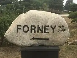 In August 1956, Forney was attached to the Office of the Secretary of Defense in Washington, D.C., and served with assistant secretary for international security affairs as assistant for special programs until June 1957. Forney was subsequently ordered back to Korea and appointed commanding officer, U.S. Marine Corps Component, U.S. Naval Advisory Group. In this capacity he served as U.S. Marine Corps advisor to the Republic of Korea Marine Corps. During this time, Forney helped establish the 1st Marine Division base in Pohang, for which the division named a road in his honor in 2010.[14][15] Forney retired from the Marine Corps after 28 years of active service in June 1959 and was advanced to the rank of brigadier general for having been specially commended in combat. He also received Army Commendation Medal for his second tour of duty in Korea.[1][2]