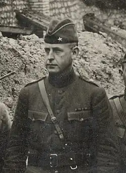 Following the American entry into the war, King was promoted to the rank of colonel in the National Army. He was the Chief of Staff of the 28th Division, a National Guard formation known as the "Keystoners," in Camp Hancock, Georgia, and also during part of its campaign in France.[5] He arrived in Europe in May 1918 and was promoted to the rank of brigadier general the following month.[2] He participated in the Marne offensive and counter-offensive starting July 15, 1918, and assumed command the 65th Brigade on July 31, 1918. He led the brigade in the battles of the Somme and Meuse-Argonne.[2] He remained with the Army of Occupation in Luxemburg from December 1918, a month after the Armistice with Germany which ended hostilities, until April 1919 and returned to the United States in 1919.[2]