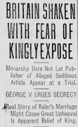 - ^ "Man Who Libeled George V Robs Paper". The New York Times. 1 December 1921. p. 11. Retrieved 24 November 2022 – via newspapers.com.