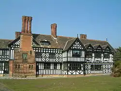 Before he joined Grayson, Ould's works include Uffington House, and the Queen's School, both in Chester, and both influenced by Douglas.[3] After joining Grayson, Ould is given credit for the design of Hill Bark, originally built as Bidston Court in Bidston Hill, and later moved to Frankby, Merseyside.[4] The firm of Grayson and Ould is best known for their designs at Trinity Hall and Selwyn College in Cambridge University, and Ould himself for two houses for the Mander family at Wightwick Manor[2] and The Mount, both near Wolverhampton.