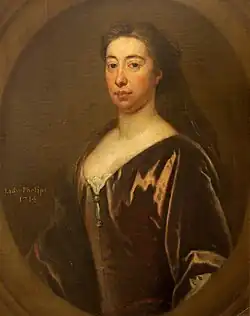 Phelips married firstly in about 1667, Dorothy Bury, widow of John Bury of Colleton Barton, Chulmleigh, Devon, and daughter of Henry Cheeke of West Newton, North Petherton, Somerset. They had no children and she died on 19 November 1678. He married secondly in about 1683, Edith Blake, daughter of John Blake, ironmonger, of Langport, Somerset and had three daughters: Anne, Elizabeth and Edith.[2][1] Phelips' daughter, Anne married her cousin Edward Phelips and their daughter, Bridget married Sir Gerrard Napier, 5th Baronet of Middle March.[3]