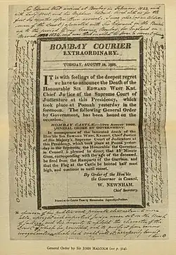 - ^ a b c Drewitt, Frederic Dawtrey (1907). Bombay in the days of George IV : memoirs of Sir Edward West, chief justice of the King's court during its conflict with the East India company, with hitherto unpublished documents. London: Longmans, Green, and Co. pp. 17–19.